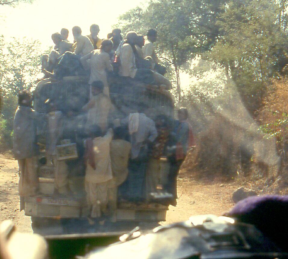 Loaded bus in front of our (equally loaded) bus, climbing the ghats. A long way from anywhere you can find on any ordinary map, central India.